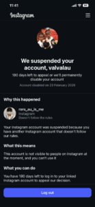 你好!我的ig 帳號出現異常被停權 造成我非常大的困擾