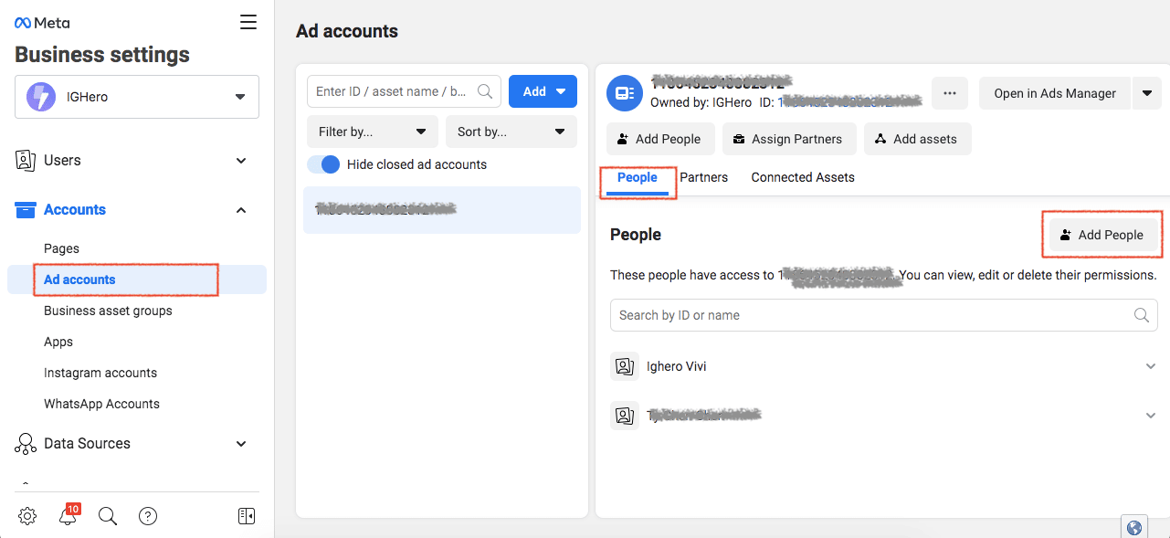點擊「People」,你就可以查看擁有管理權限的人員,或是添加人員幫忙管理廣告賬號。